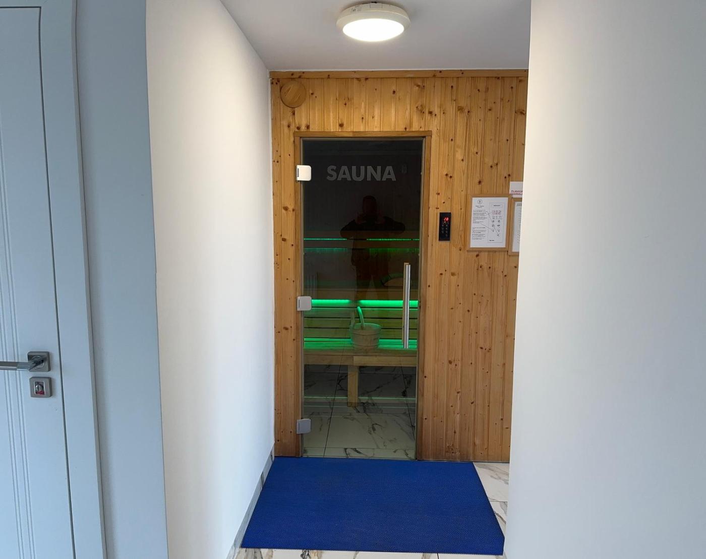 Zaplecze odnowy biologicznej obiektu Baltic Marina 30m obejmuje saunę, wannę z hydromasażem i łaźnię hammam.