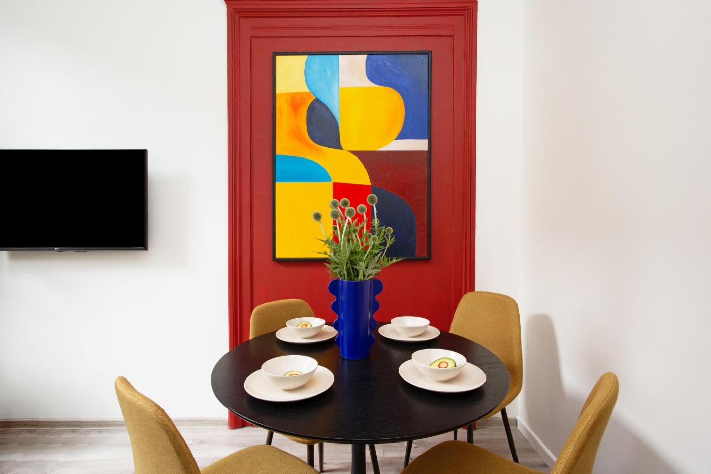 Apartament z 1 sypialnią. This apartment features 1 living room, 1 separate bedroom and 1 bathroom with a shower and a hairdryer. The well-fitted kitchen has a stovetop, a refrigerator, kitchenware and a microwave. The apartment features a flat-screen TV with streaming services, a washing machine, a coffee machine, a seating area as well as city views. The unit has 2 beds. Apartament - 4 osobowy. Powierzchnia pokoju ok.: 36 mkw.