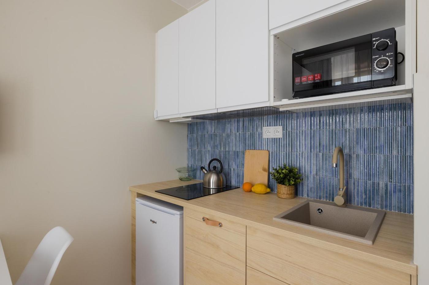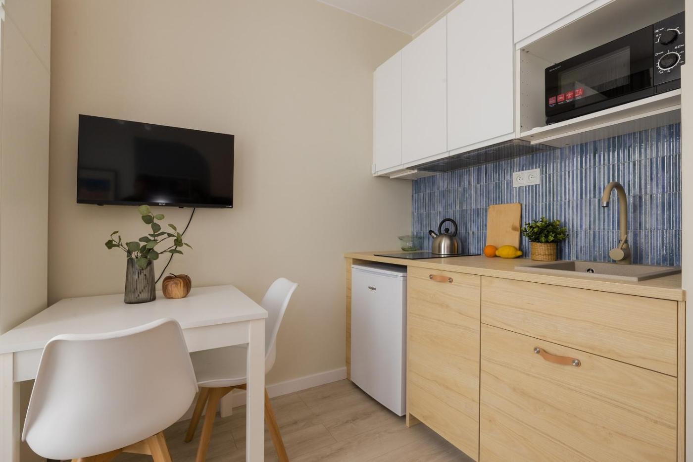 Studio. The studio has a private bathroom, a washing machine, a tea and coffee maker, as well as a seating area with a flat-screen TV. In the well-equipped kitchen, guests will find a stovetop, a refrigerator, a dishwasher and kitchenware. Among the room amenities are a dining area, a wardrobe and a sofa as well as garden views. The unit has 1 bed. Studio - 2 osobowy. Powierzchnia pokoju ok.: 20 mkw.