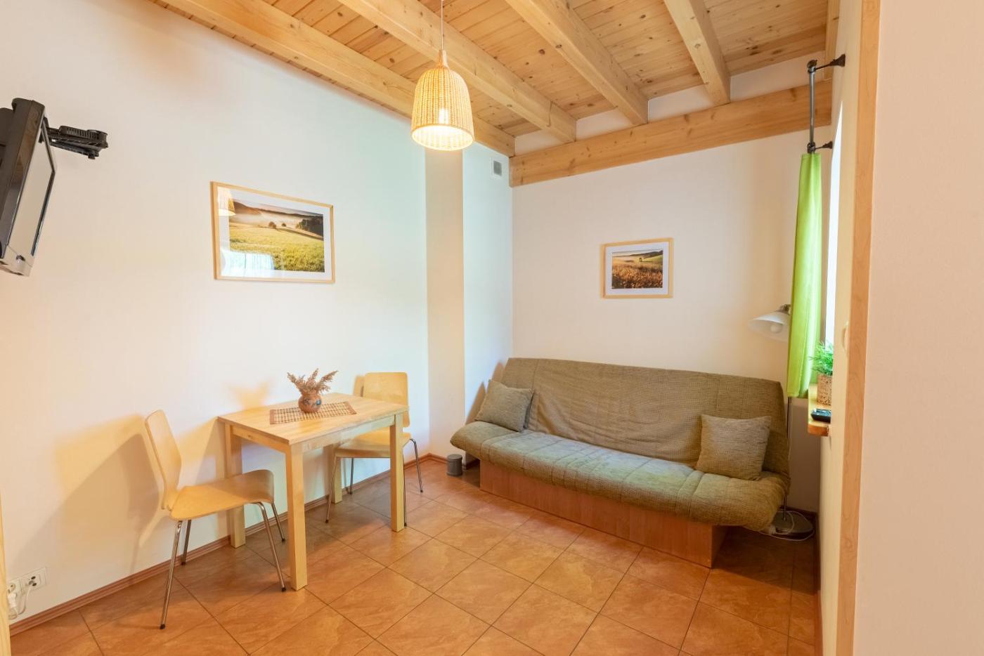 Apartament z 1 sypialnią. This apartment comes with 1 living room, 1 separate bedroom and 1 bathroom with a shower and free toiletries. Guests will find a stovetop, a refrigerator, kitchenware and a tea and coffee maker in the well-equipped kitchen. The apartment also includes a barbecue. Boasting a terrace with garden views, this apartment also features a private entrance and a flat-screen TV with cable channels. The unit has 3 beds. Apartament - 4 osobowy. Powierzchnia pokoju ok.: 35 mkw.